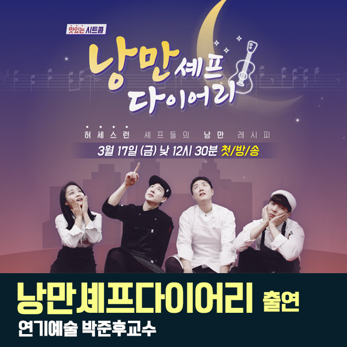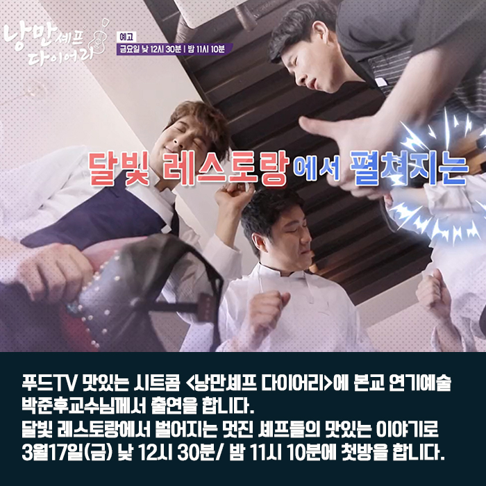 푸드TV 맛있는 시트콤 <낭만셰프 다이어리>에 연기예술 박준후 교수님께서 출연을 합니다.