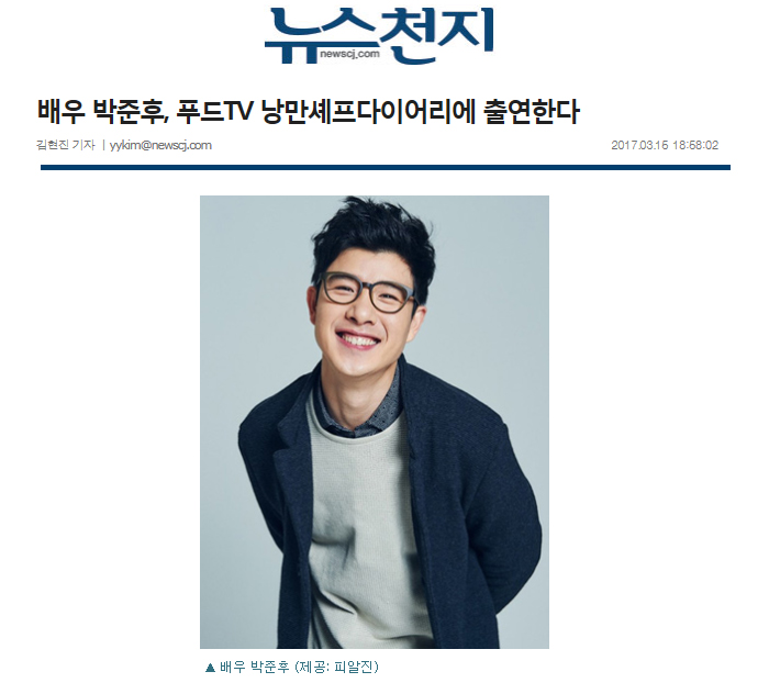 [뉴스천지]배우 박준후, 푸드TV 낭만셰프다이어리에 출연한다