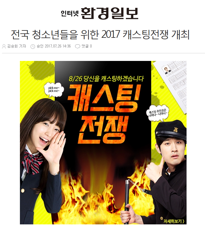[환경일보]전국 청소년들을 위한 2017 캐스팅전쟁 개최