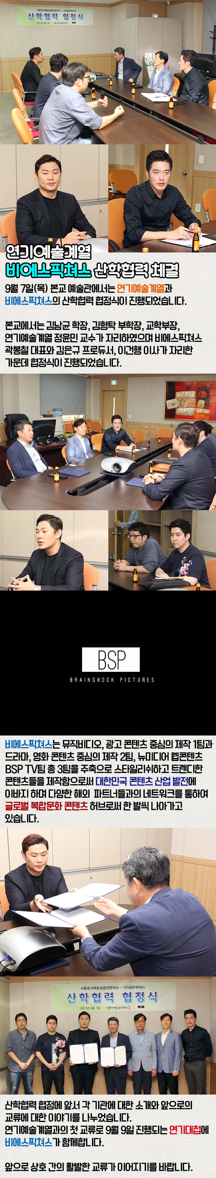 9월 7일(목) 본교 예술관에서는 연기예술계열과 비에스픽쳐스의 산학협력 협정식이 진행되었습니다.