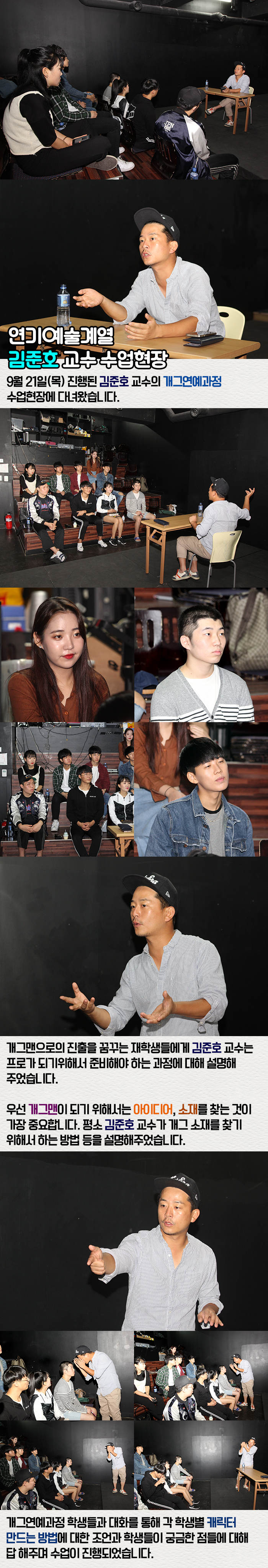 9월 21일(목) 진행된 김준호 교수의 개그연예과정 수업현장에 다녀왔습니다.