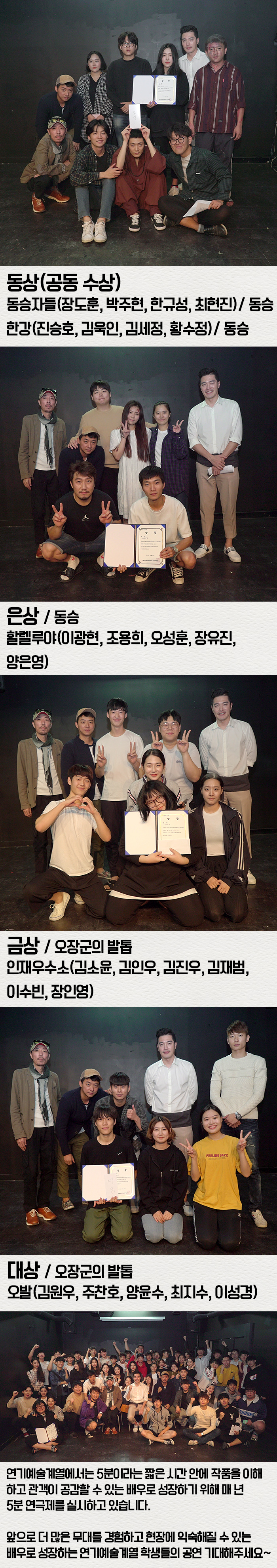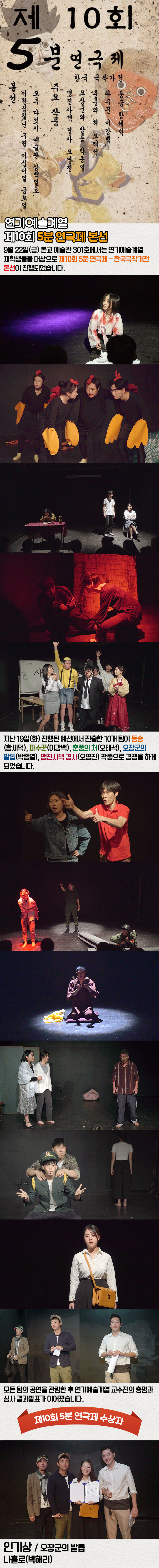 9월 22일(금) 본교 예술관 301호에서는 연기예술계열 재학생들을 대상으로 제10회 5분 연극제 - 한국극작가전 본선이 진행되었습니다.