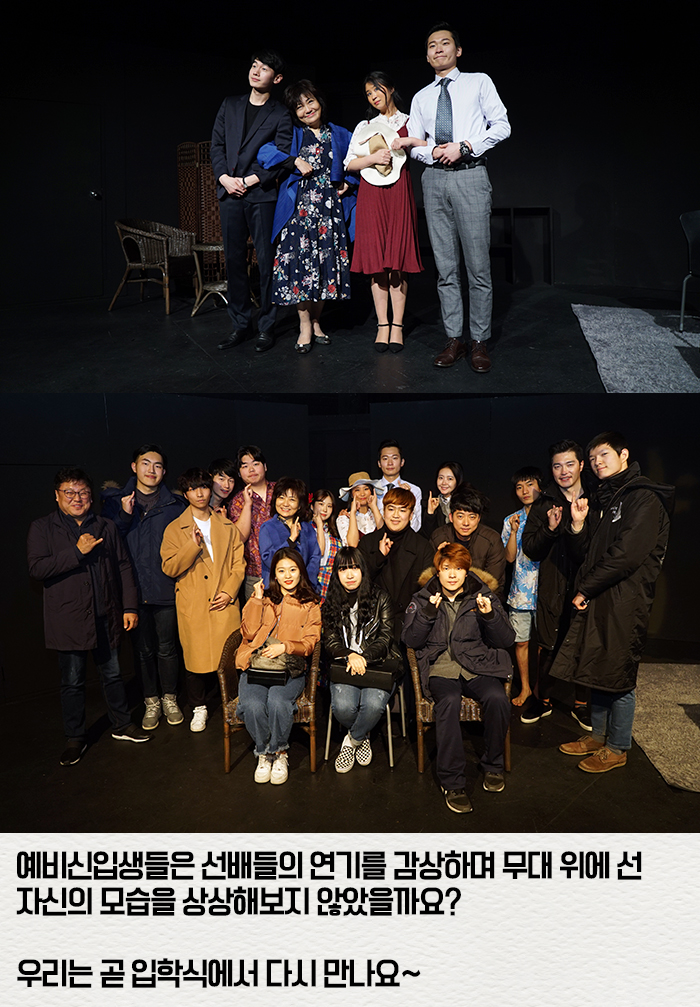 1월 19일(금)정윤민, 임성언 교수의 인솔로 연기예술계열, 방송영화연기계열 예비 신입생들과 함께 연극관람을 하였습니다.