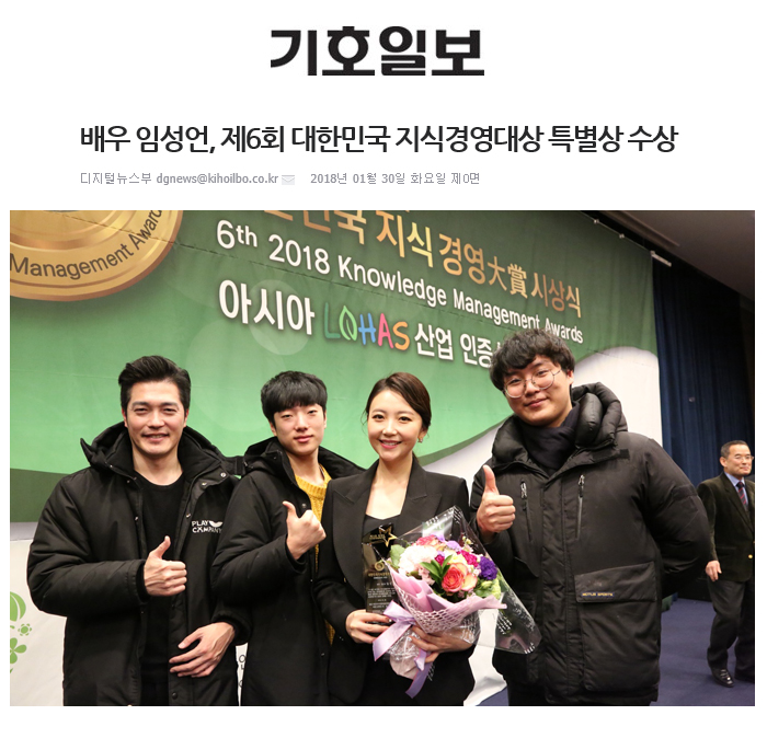 [기호일보]배우 임성언, 제6회 대한민국 지식경영대상 특별상 수상