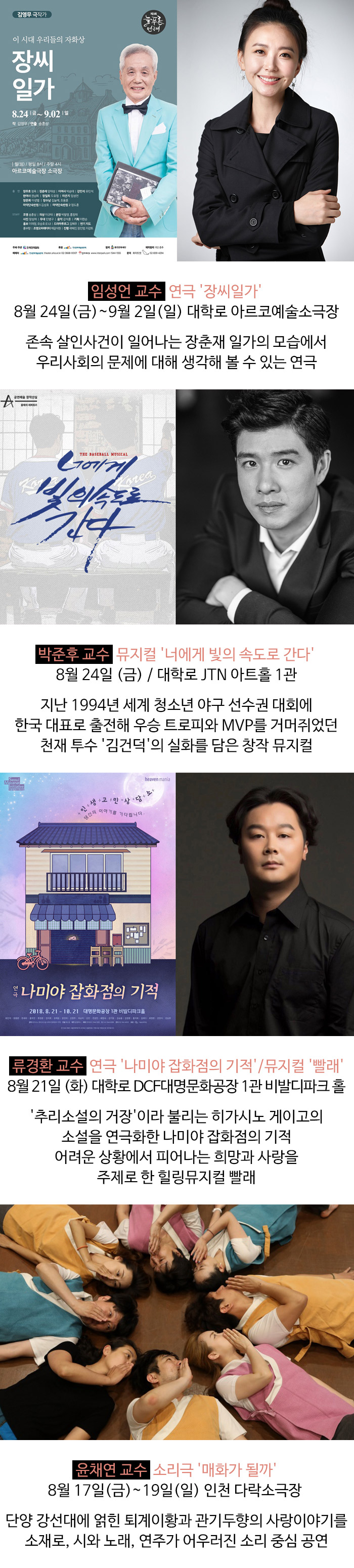 연기예술계열 교수진들의 활동사항