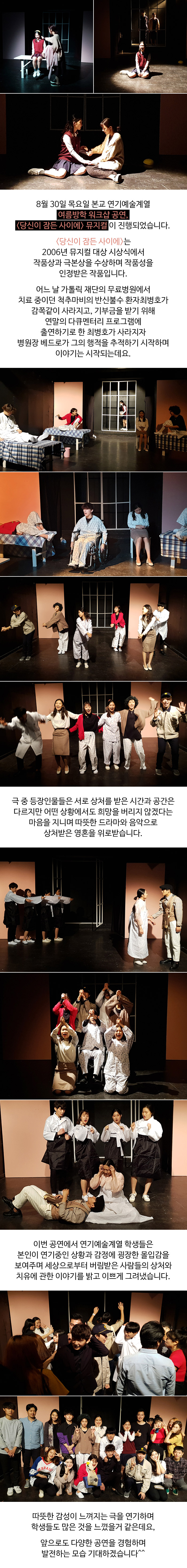 8월 30일 목요일 본교 연기예술계열 여름방학 워크샵 공연 <당신이 잠든 사이에> 뮤지컬이 진행되었습니다.