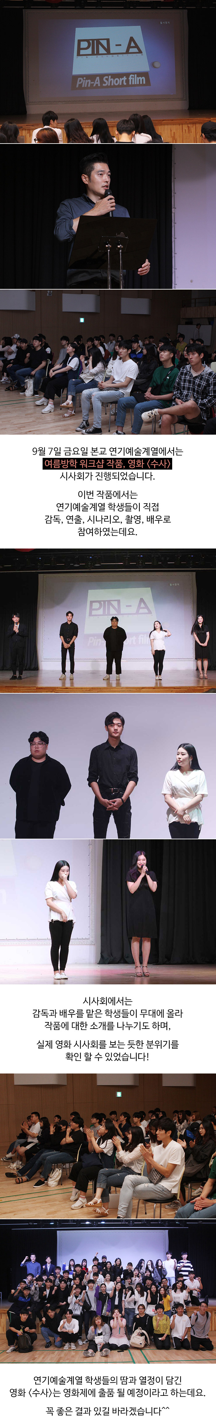 9월 7일 금요일, 본교 연기예술계열에서는 여름방학 워크샵 작품 영화<수사> 시사회가 진행되었습니다.