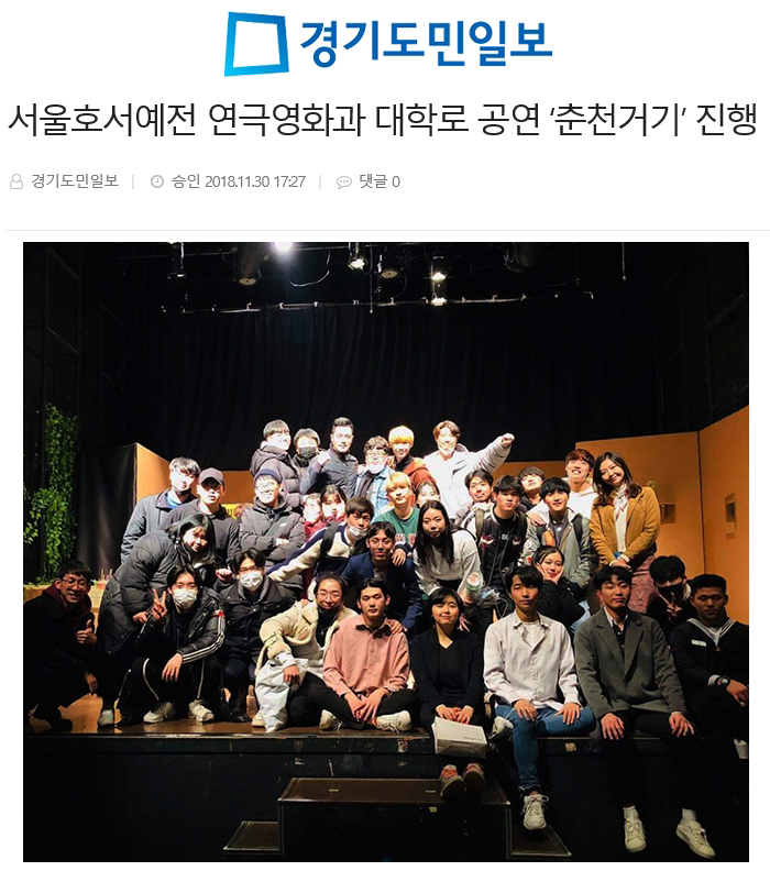 [언론보도]대학로 공연 ‘춘천거기’ 진행