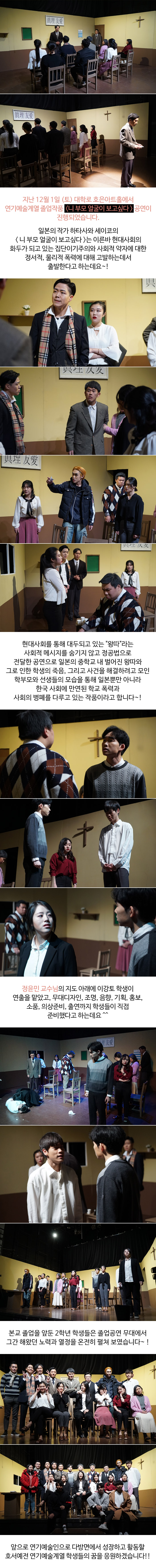 지난 12월 1일 (토) 대학로 호은아트홀에서 연기예술계열 졸업작품 "니 부모 얼굴이 보고싶다" 공연이 진행되었습니다.