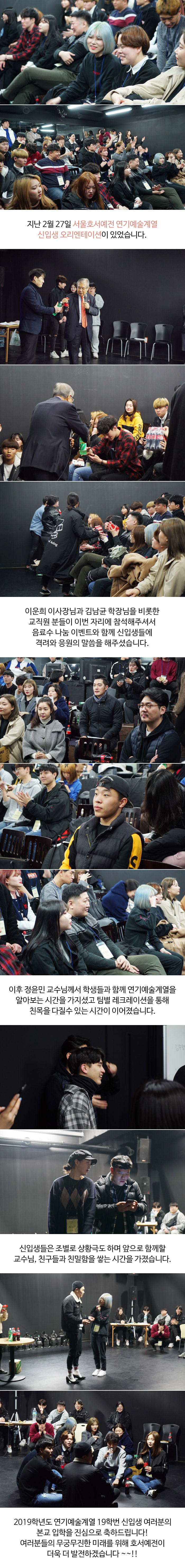 지난 2월 27일 서울호서예전 연기예술계열 신입생 오리엔테이션이 있었습니다.