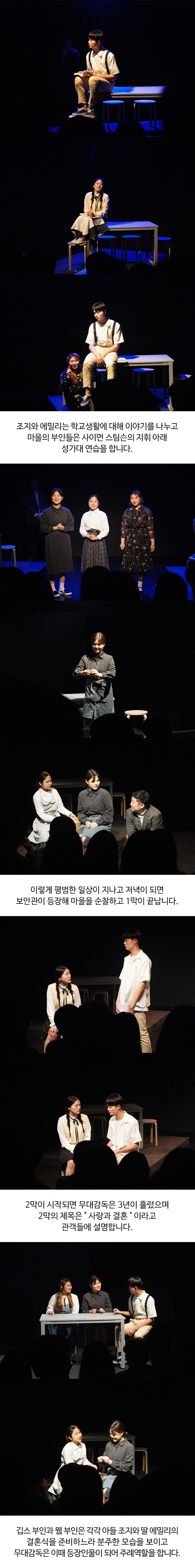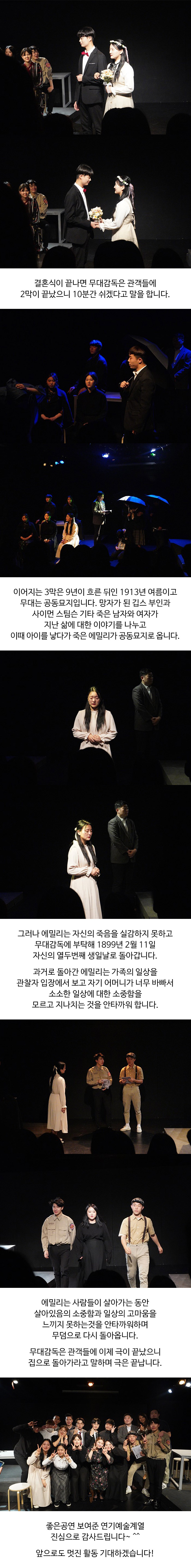 지난 6월 12일 수요일 오후 4시와 오후 7시 총 두 타임에 거쳐 연기예술계열의 '우리읍내' 연극이 본교 소극장에서 진행되었습니다.