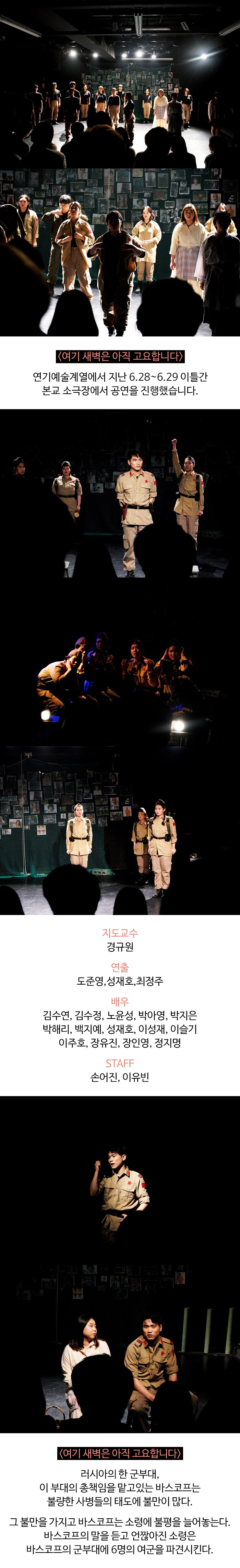 연기예술계열에서 지난 6.28~6.29 이틀간 본교 소극장에서 '여기 새벽은 아직 고요합니다' 공연을 진행했습니다.