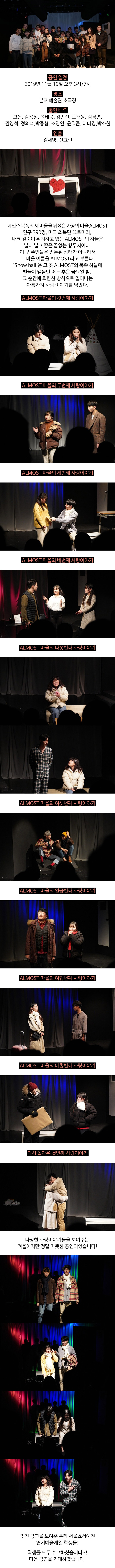 11/19 본교 예술관에서 연기예술계열 학생들의 기말작품 <스노우볼>이 공연되었습니다.