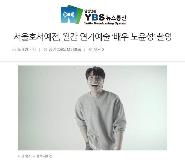 서울호서예술실용전문학교(이하 서울호서예전) 연기예술계열과 방송영화연기계열이 매달 시리즈로 월간 연기예술을 촬영한다. 2020년 첫 스타트의 주인공은 배우 노윤성이다.