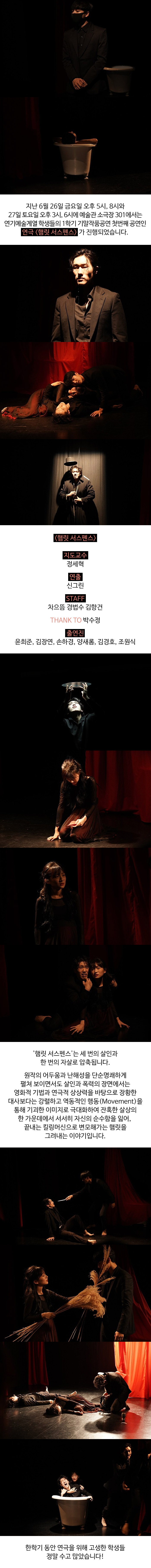 지난 6월 26일 금요일 오후 5시, 8시와 27일 토요일 오후 3시, 6시에 예술관 소극장 301에서는 연기예술계열 학생들의 1학기 기말작품공연 첫번째 공연인 연극 '햄릿 서스펜스'가 진행되었습니다.