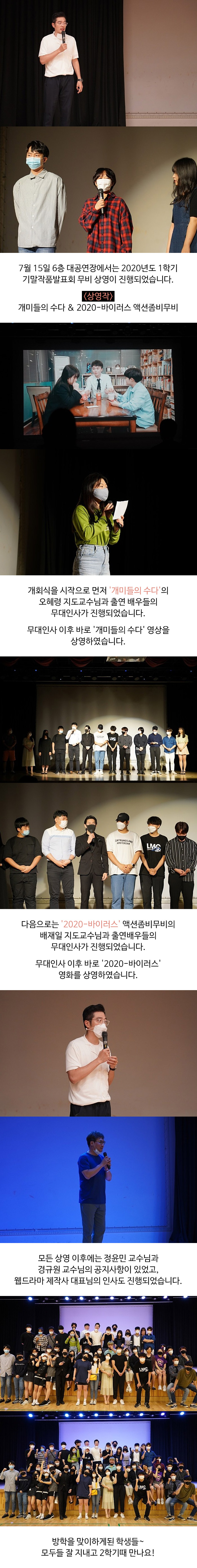 7월 15일 6층 대공연장에서는 2020년도 1학기 기말작품발표회 무비 상영이 진행되었습니다.