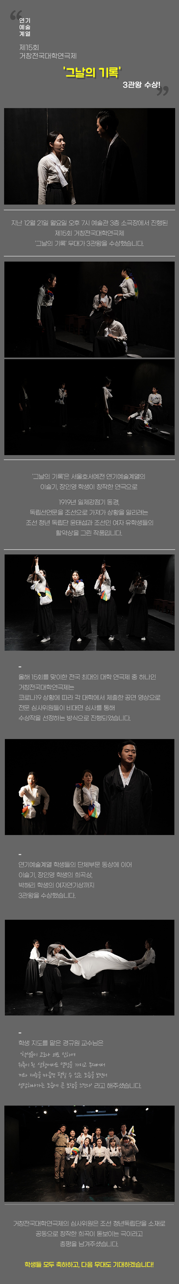 연기예술계열 제15회 거창전국대학연극제 '그날의 기록' 3관왕 수상