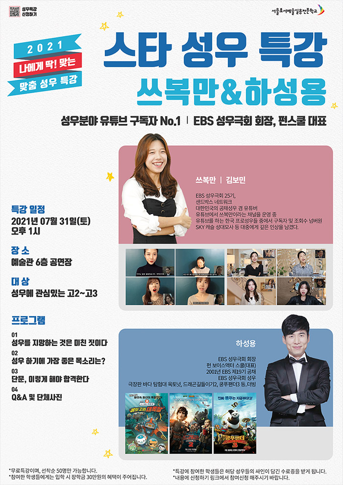 스타 성우 특강 쓰복만&하성용 신청하기