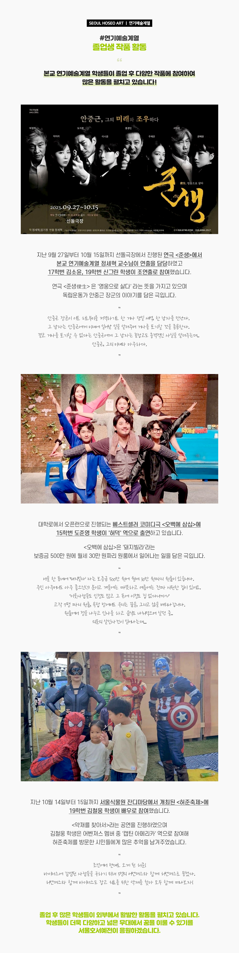 연기예술계열 졸업생 작품 활동