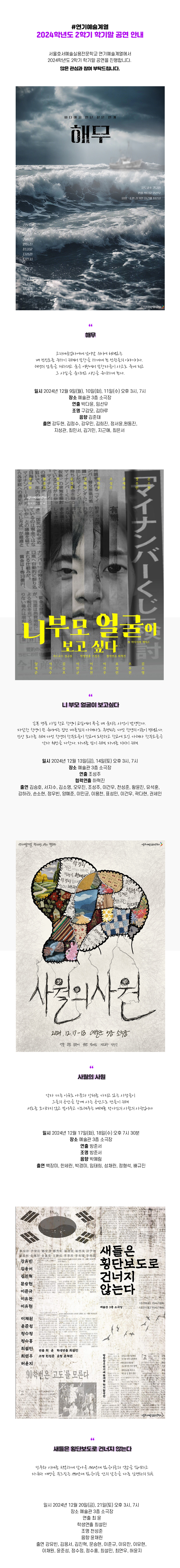 연기예술계열 2024학년도 2학기 학기말 공연 안내