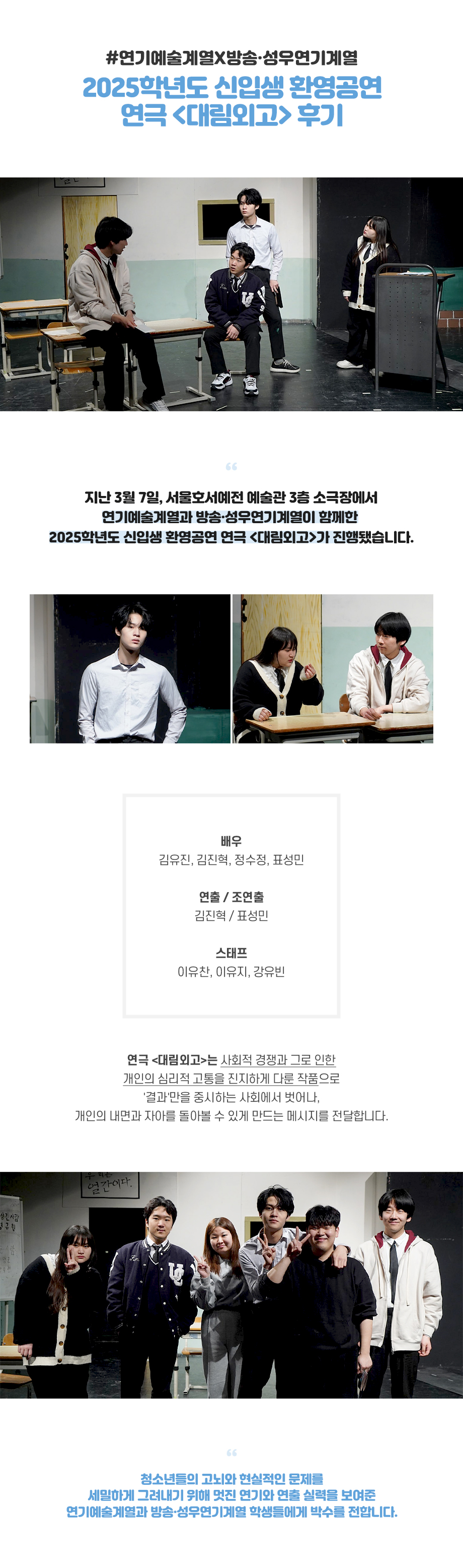 연기예술계열X방송·성우연기계열 2025학년도 신입생 환영공연 연극 <대림외고> 후기