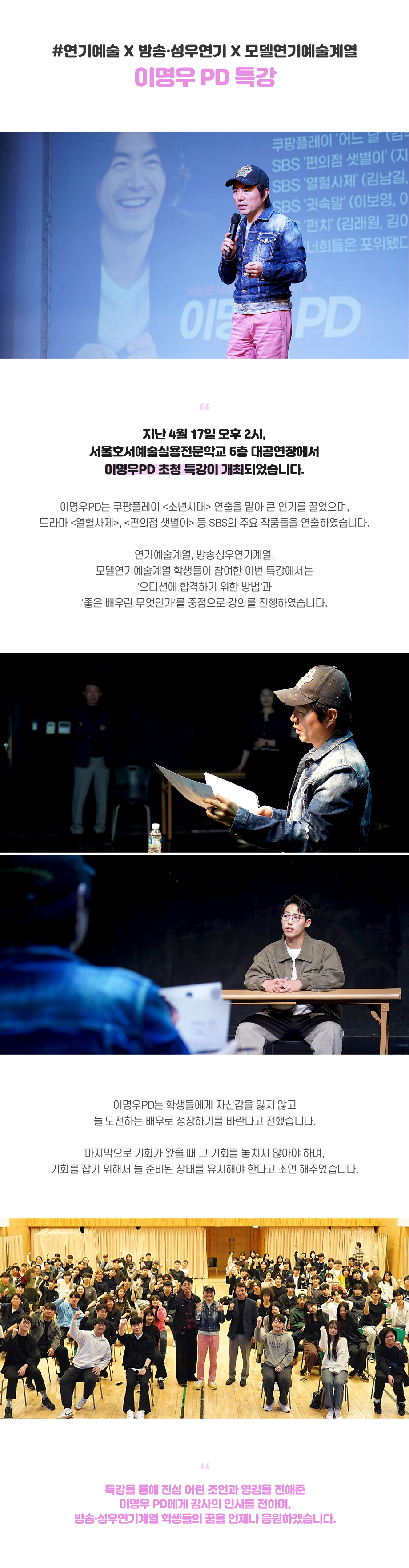 연기예술 X 방송·성우연기 X 모델연기예술계열 이명우 PD 특강