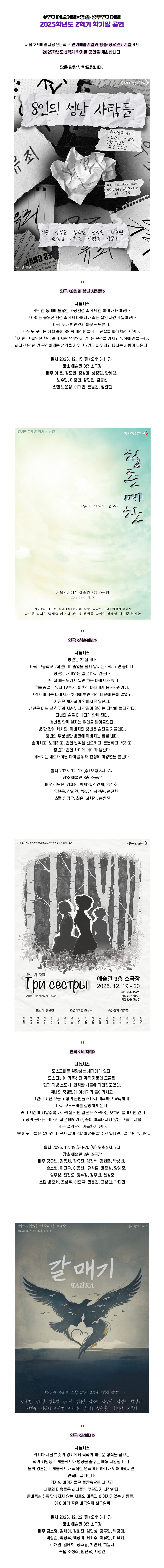 서울호서예술실용전문학교 연기예술계열과 방송·성우연기계열에서 2025학년도 2학기 학기말 공연을 개최합니다.