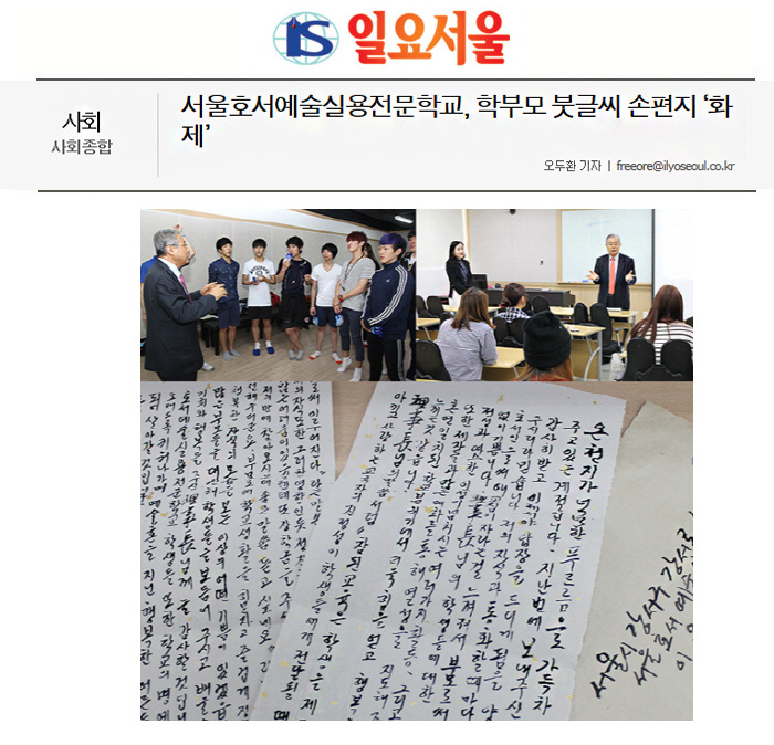 [일요서울Ⅰ오두환 기자] 서울 강서구에 위치한 실용예술 교육기관인 서울호서예술실용전문학교(이하 서울호서예전) 이운희 명예이사장 앞으로 전달된 학부모의 붓글씨로 쓴 손편지가 화제가 되고 있다. 5월 스승의날을 기념해 보내진 손편지가 전달된 것.
