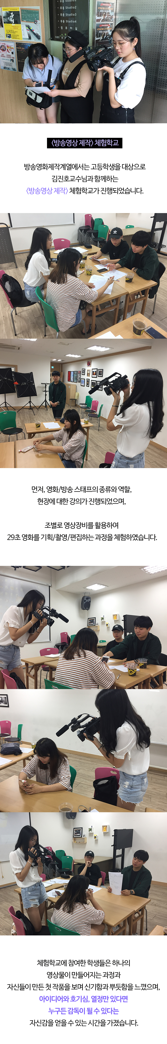 방송영화제작계열에서는 고등학생을 대상으로 김진호교수님과 함께하는 "방송영상 제작" 체험학교가 진행되었습니다.