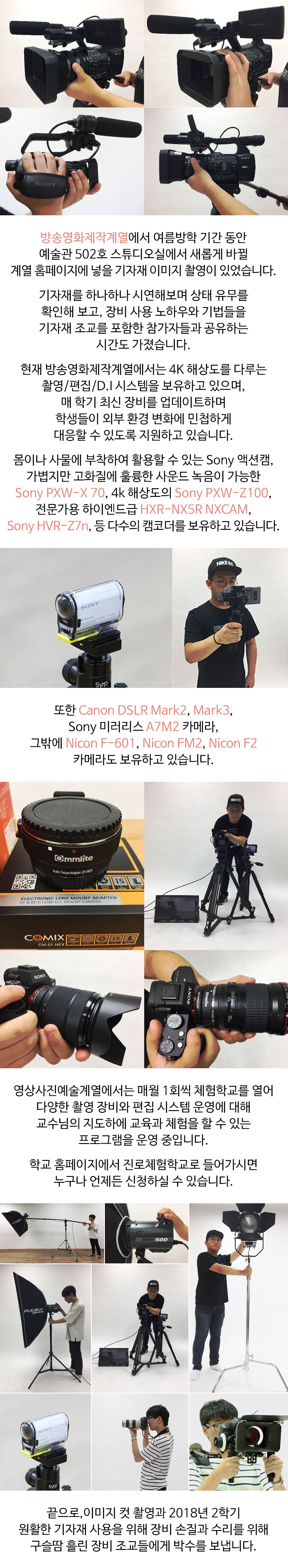 방송영화제작계열에서 여름방학 기간 동안 예술관 502호 스튜디오실에서 새롭게 바뀔 계열 홈페이지에 넣을 기자재 이미지 촬영이 있었습니다.