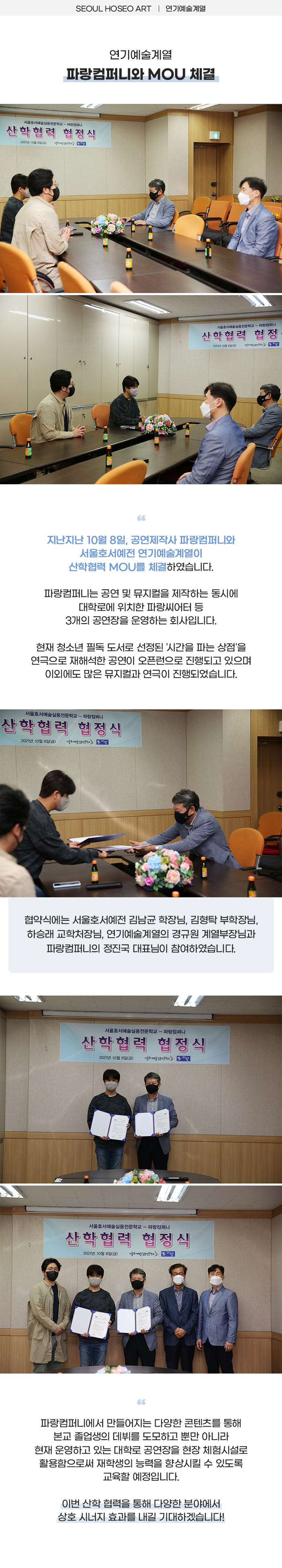 서울호서예전 연기예술계열, 파랑컴퍼니와 MOU 체결