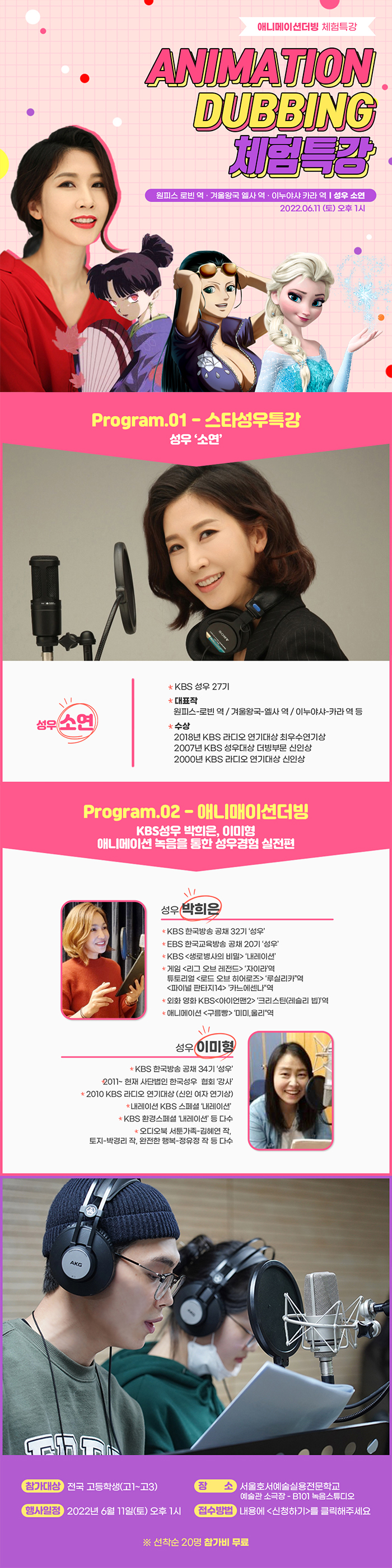 서울호서예술실용전문학교 방송성우연기계열 애니메이션더빙 체험특강 신청하기
