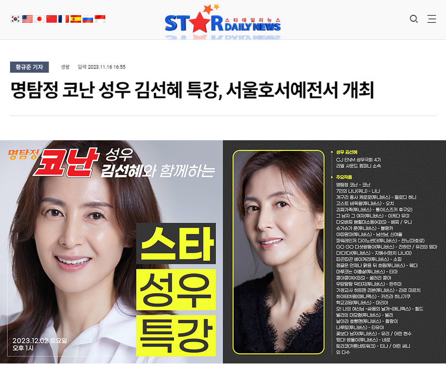 [언론보도] 명탐정 코난 성우 김선혜 특강, 서울호서예전서 개최
