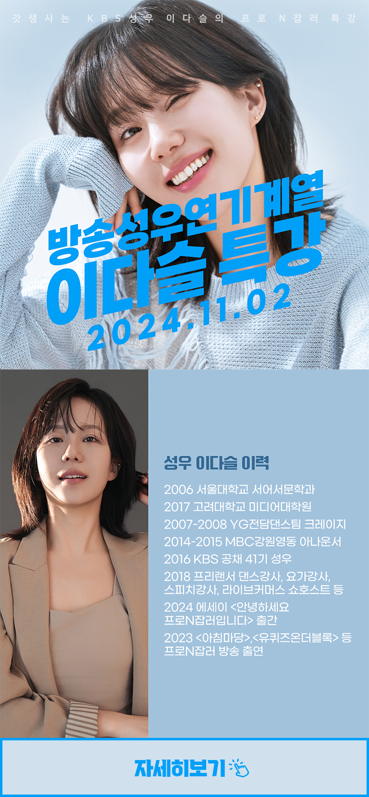 서울호서예술실용전문학교 방송·성우연기계열 갓생사는 KBS성우 이다슬의 프로 N잡러 특강 신청하기