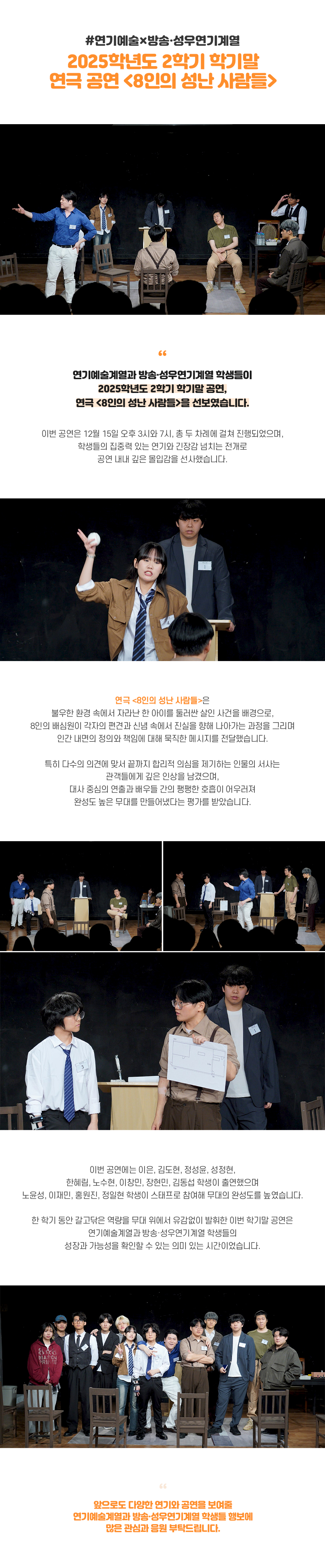 연기예술X방송·성우연기계열 2025학년도 2학기 학기말 연극 공연 <8인의 성난 사람들>