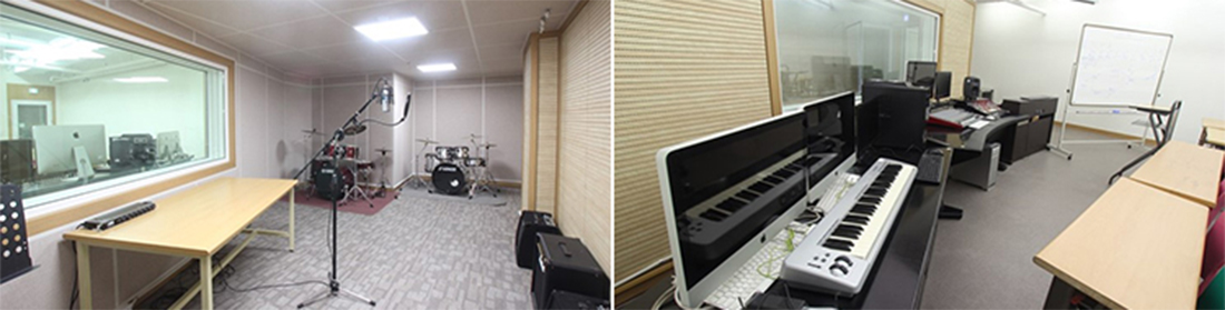 현직 활동 중인 교수님과 교내 녹음 스튜디오에서 실무 중심의 1대1 멘토링 수업을 진행하고 있습니다.