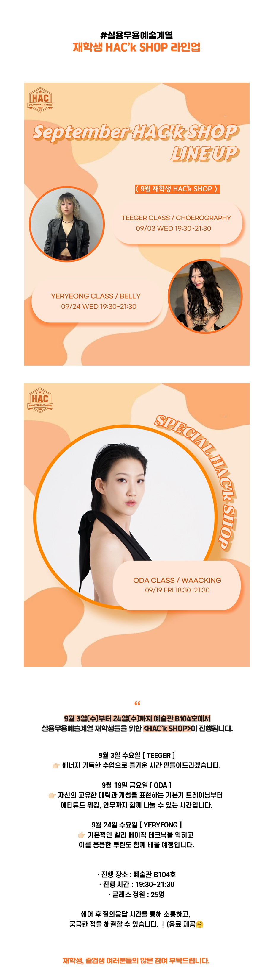 실용무용예술계열 재학생들을 위한 9월 HAC’k SHOP 라인업