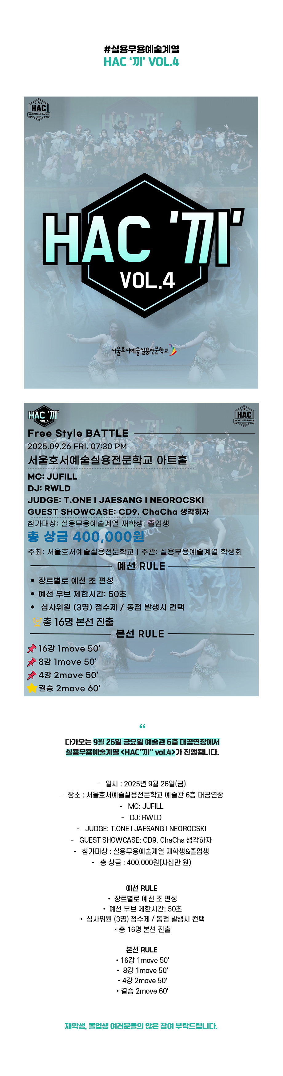 다가오는 9월 26일 금요일 서울호서예술실용전문학교 예술관 6층 대공연장에서 실용무용예술계열의
