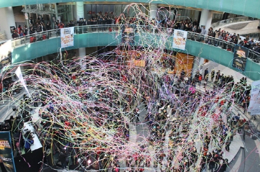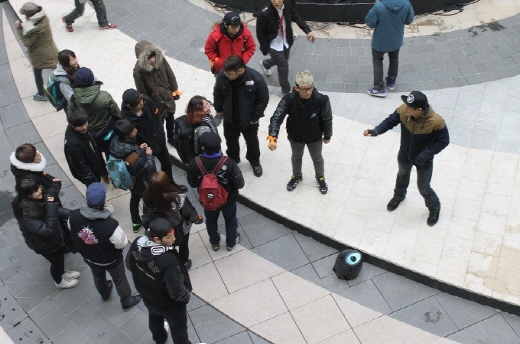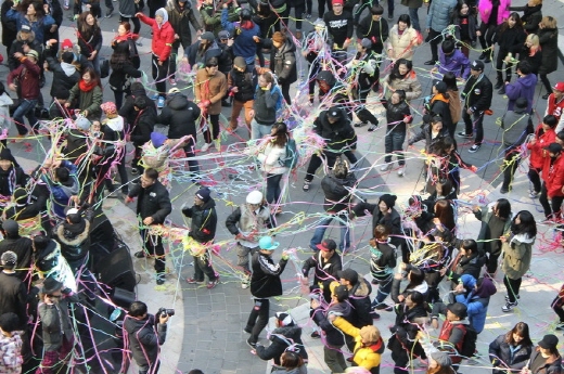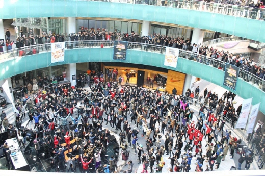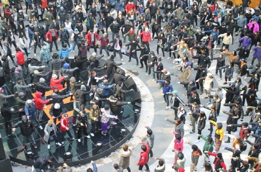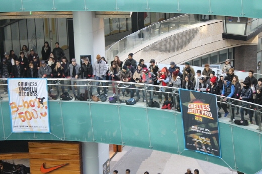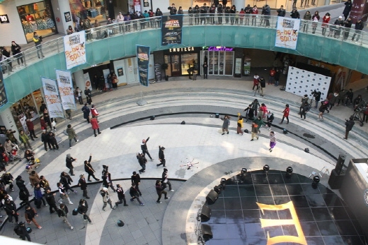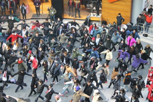 이는 메세나폴리스 광장 여기저기에서 이번 세계 신기록 도전에 참여하는 한국 대표 비보이 팀 29개팀, 576명이 숨어있다가 차례로 비보잉, 락킹댄스 , 팝핀 등 다양한 춤을 선보이며 깜짝 등장한 것.