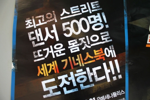 12월 1일 오후 2시부터 서울 합정동 메세나폴리스에서는 한국 비보이 500명이 6분간 혼연일체로 군무를 펼쳐, 일본이 보유하고 있던 기존 기록을 경신, 세계 기네스 신기록을 달성한 "비보이 500,6" 대회가 진행됐다.