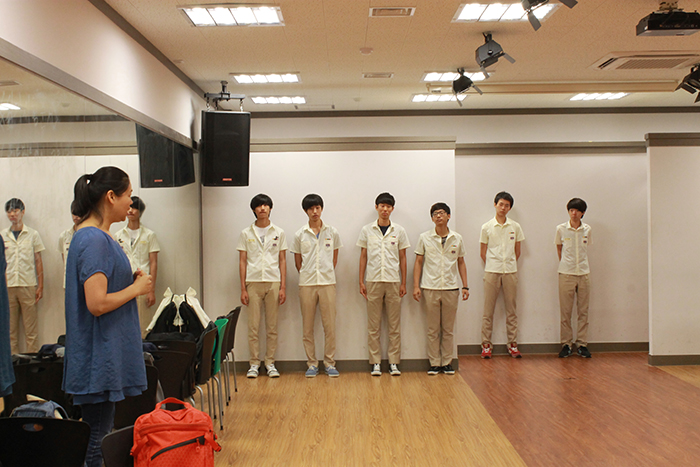 아직은 어색하고 부끄러워서 천천히 발을 맞추지만 이내 금방 음악에 따라 리듬을 맞추는 명덕고 학생들!