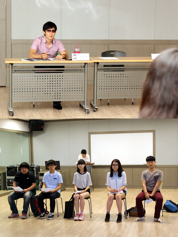 의자에 앉아있는 학생들이 각자의 손에 대본을 쥐고 있는 모습이 엄청 긴장되어 보이는데요~ 릴렉스~~