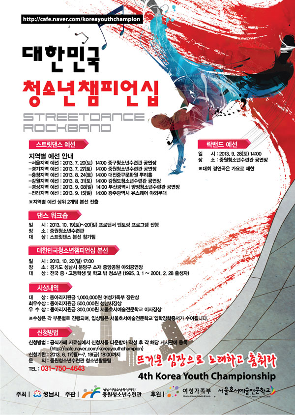 청소년들의 건전한 놀이문화 정립을 도모하고 자유로운 개성표현의 장을 마련하기 위한 대한민국 청소년 챔피언십!