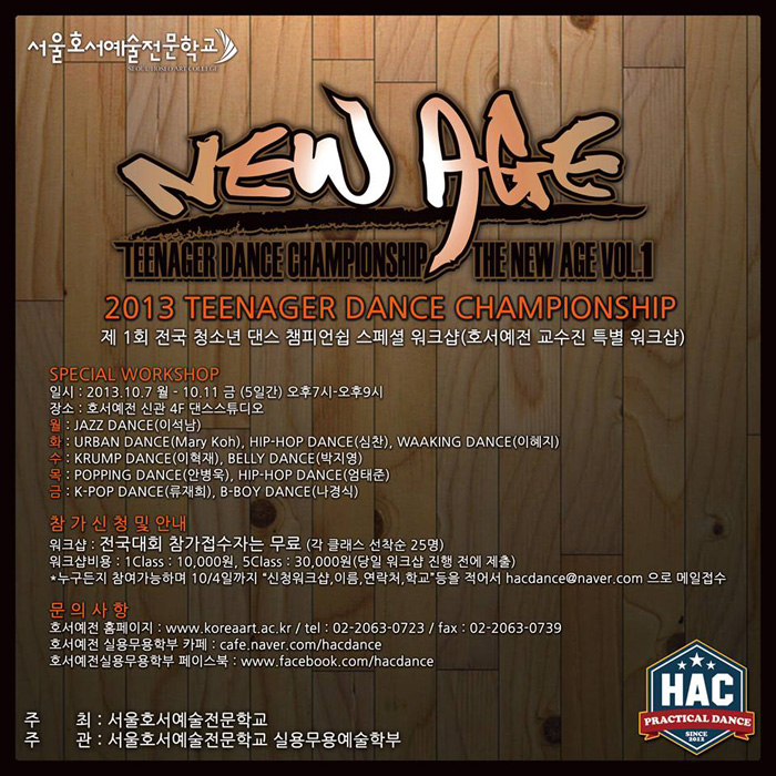 * 누구든지 참여가능하며 10/4일까지 "신청워크샵, 이름, 연락처, 학교"등을 적어서 hacdance@naver.com으로 메일접수