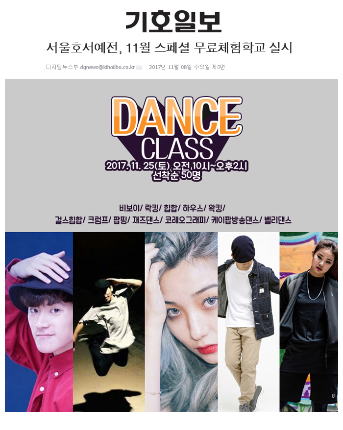 한편, 춤에 관심이 많고, 하고 싶은 학생들에게 열려있는 기회와 꿈을 계속해서 이어갈 수 있는 발판을 마련하고 있는 서울호서예전은 현재 2018학년도 원서접수 중이며 수능, 내신과는 상관없이 면접과 실기로 학생들을 선별하고 있다.