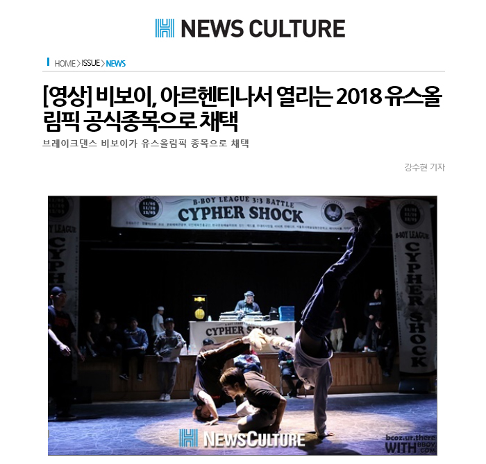 [뉴스컬쳐]비보이, 아르헨티나서 열리는 2018 유스올림픽 공식종목으로 채택