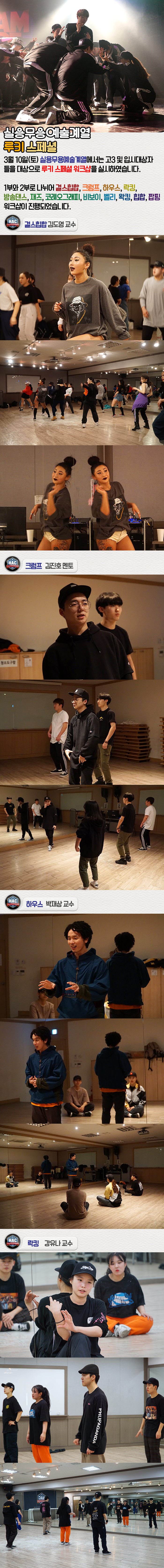 3월 10일(토) 실용무용예술계열에서는 고3 및 입시대상자들을 대상으로 루키 스페셜 워크샵을 실시하였습니다.