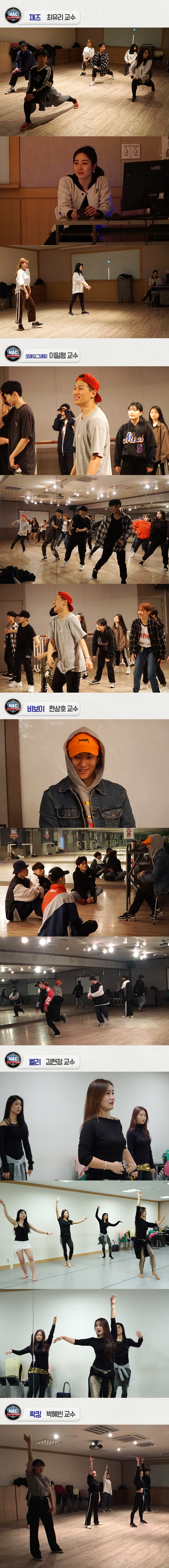 1부와 2부로 나뉘어 걸스힙합, 크럼프, 하우스, 락킹, 방송댄스, 재즈, 코레오그래피, 비보이, 벨리, 왁킹, 힙합, 팝핑 워크샵이 진행되었습니다.