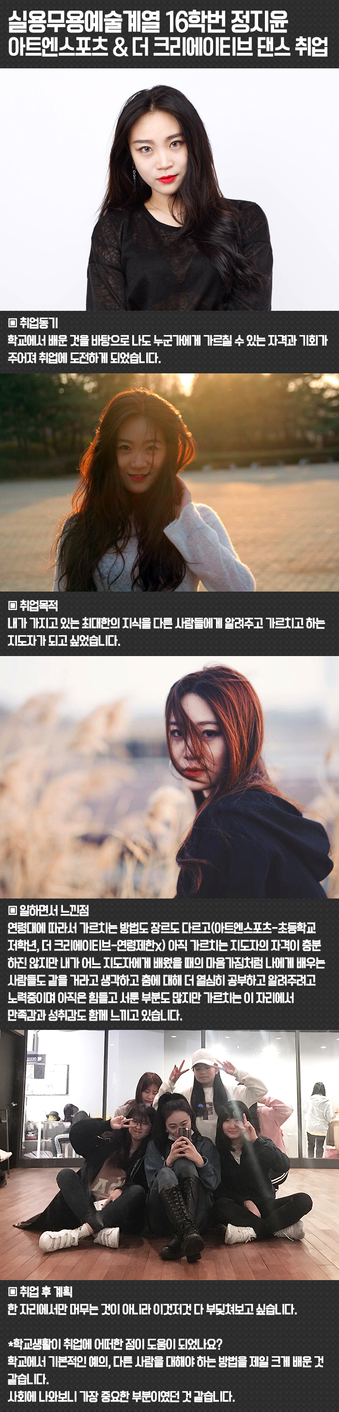 16학번 정지윤 아트엔스포츠 & 더 크리에이티브 댄스 취업
