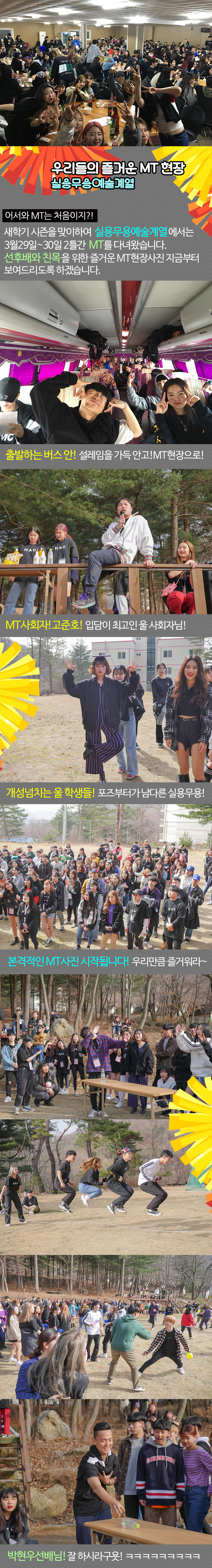 실용무용예술계열에서는 3월29일~30일 2틀간 MT를 다녀왔습니다.